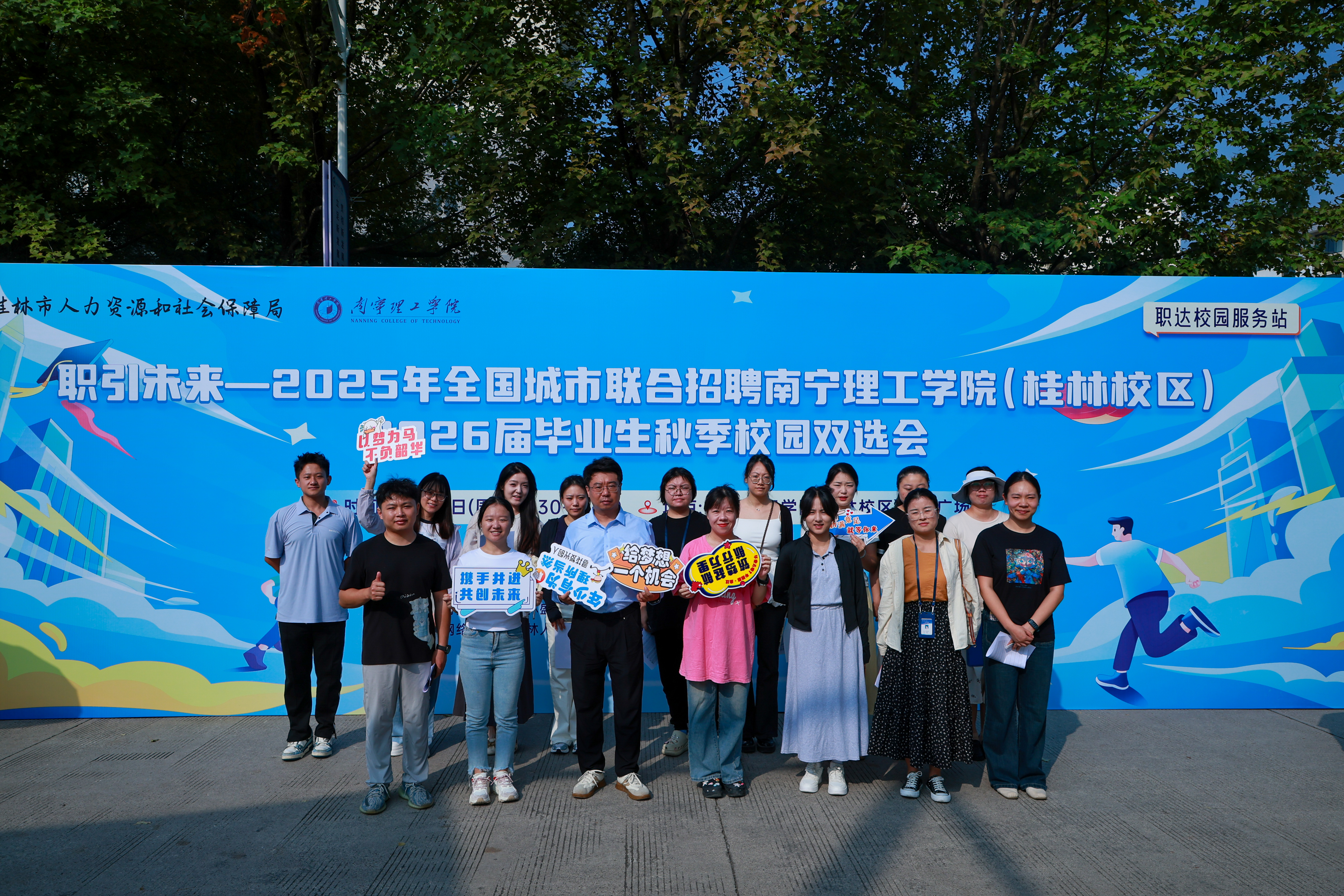 2025年10月17日,由桂林市人力资源和社会保障局、南宁理工学院联合主办,桂林市人才服务中心、南宁理工学院就业指导与服务中心共同承办的“职引未来——2025年全国城市联合招聘南宁理工学院(桂林校区)2026届毕业生秋季校园双选会”,在南宁理工学院(桂林校区)二教广场顺利举行。本次双选会聚焦毕业生就业需求,整合政企校三方资源,打造“一站式就业服务平台”,吸引60家企业参会,提供岗位需求2567个,2468名学生到场求职,现场投递简历415份,组织面试270人次,达成拟录用意向42人,为2026届毕业生开启就业新通道。