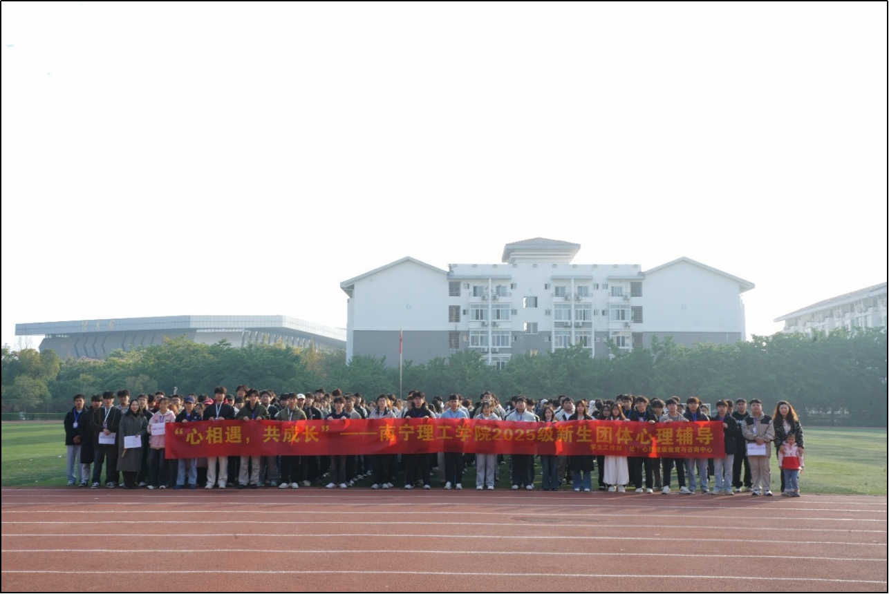 为帮助2025级新生快速适应大学集体生活,构建和谐融洽的校园氛围,强化班级凝聚力与向心力,南宁理工学院学生工作部(处)心理健康教育与咨询中心主办、大学生心理服务部承办的新生团体心理辅导活动,12月6日在足球场开展,全体2025级新生以饱满的热情积极参与。