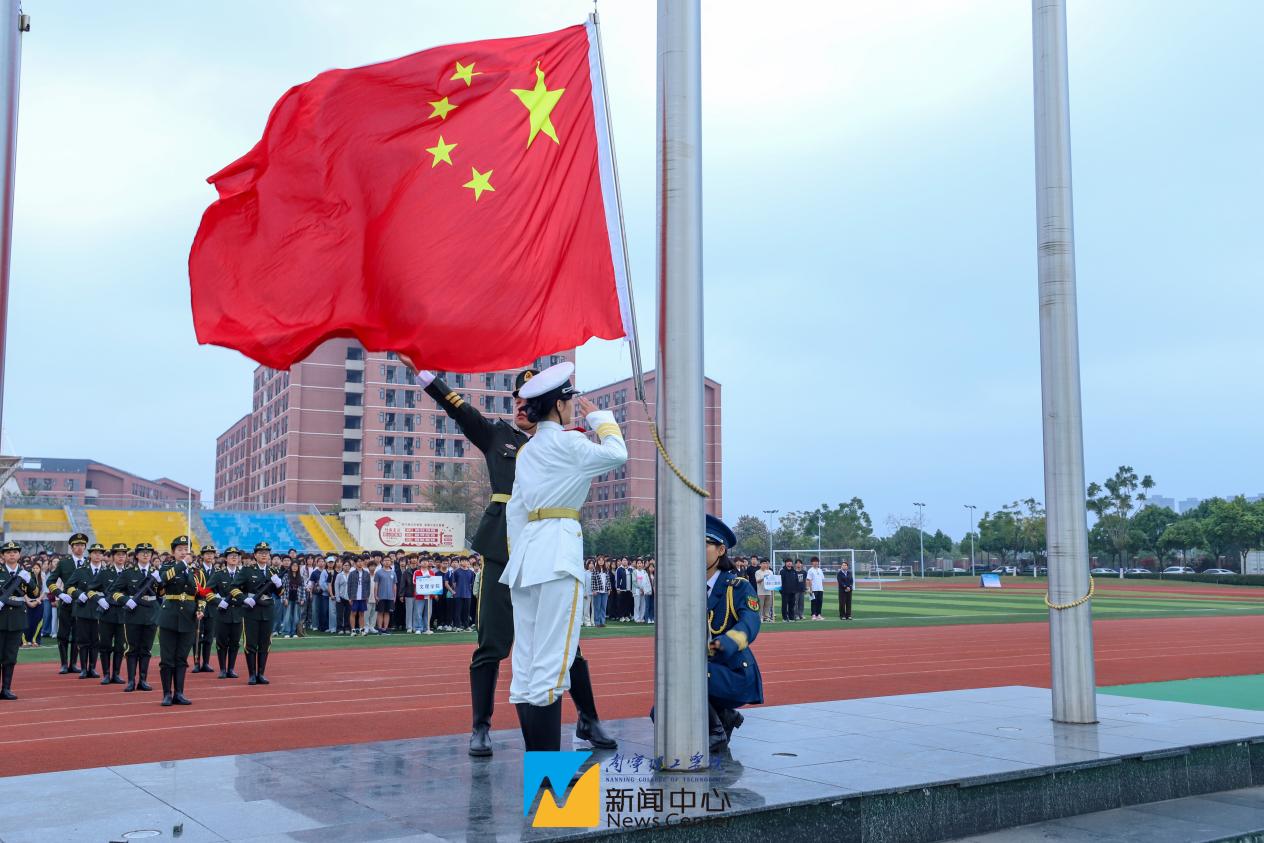 活动伊始,国旗护卫队迈着整齐划一、铿锵有力的步伐,护送着鲜艳的五星红旗走向升旗台。在激昂的《义勇军进行曲》中,五星红旗冉冉升起,全体师生肃立,行注目礼,齐唱国歌。