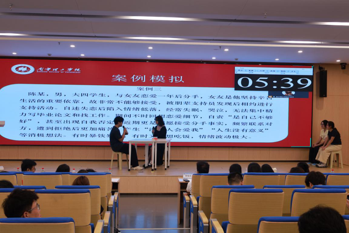 在比赛过程中,选手们面对学业焦虑、宿舍人际冲突、情感困惑等大学生常见心理案例,沉着冷静,运用倾听、共情、澄清等专业技巧,精准剖析问题根源,并提出合理又极具温情的干预思路。
